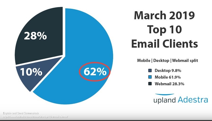 According to Adestra, 62% of email opens happen on mobile devices.