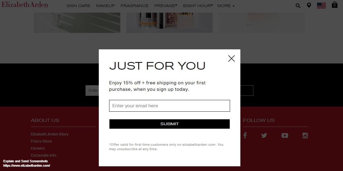 Check out these examples. The pop-up forms include a clear call to action and an attractive discount for visitors who choose to sign up.
