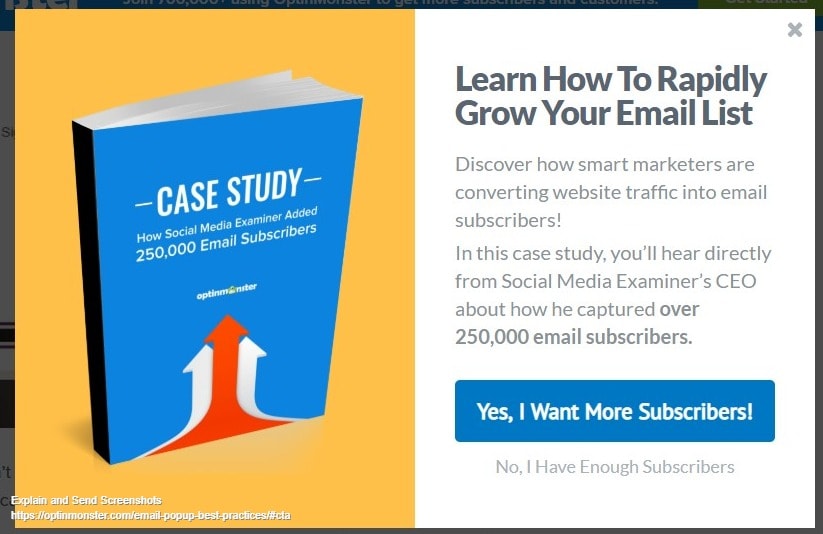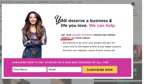 Alternatively, you could mention what you’ll be sending and the frequency on the pop-up form itself, giving the recipient the freedom to choose whether or not to subscribe to your emails.