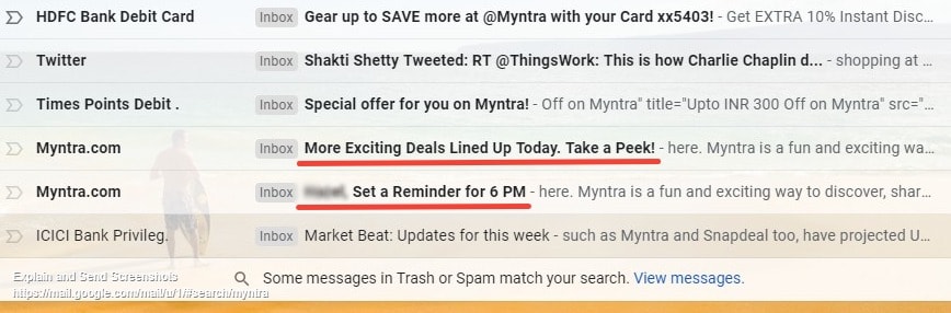 Check out how online shop Myntra injects urgency and curiosity into its subject lines.